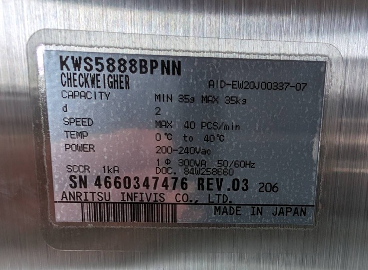 35g - 35Kg Weigh Range Max 40 pcs/min (Product Dependent) |